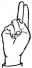 На ћирилици написано ШАЛЕ ЈЕВРЕМОВИЋ састоји се из 14 слова [?]. Исписано ћириличном једноручном азбуком за глувонеме: